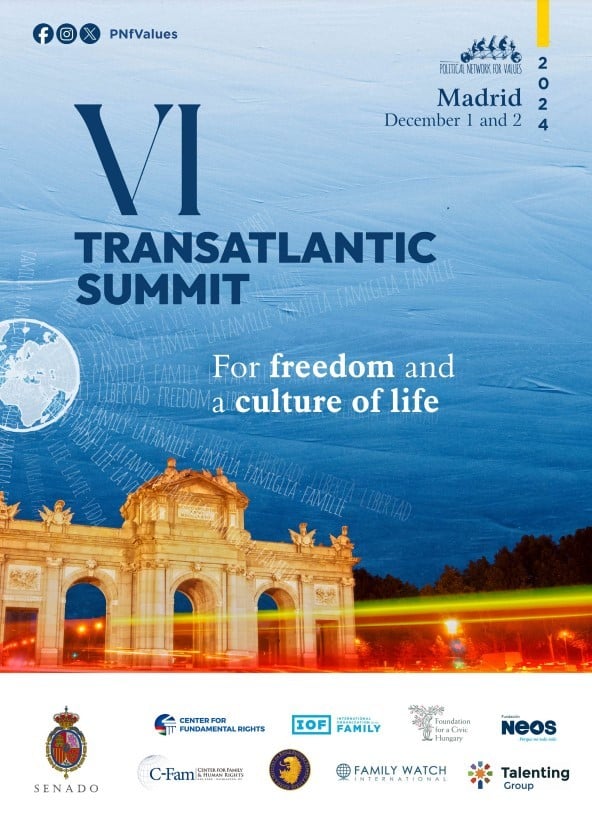 The VI Transatlantic Summit, whose central part was a conference held on Monday, December 2, at the Spanish Senate, was dedicated to the themes of freedom and a culture of life. Previous summits of the Political Network for Values took place at UN headquarters in New York in 2014, at the European Parliament in Brussels in 2017, at the Congress of Colombia in 2019, in Budapest in 2022, and again in New York in 2023. Monday’s summit in Madrid was broadcast live on the Spanish Senate’s official channel, and all journalists who sought accreditation were welcomed. As the Political Network for Values website explains, the summit occurred thanks to the support of partner organizations. In addition to Poland’s Ordo Iuris Institute, these included the Heritage Foundation, Foundation for a Civic Hungary, Center for Fundamental Rights, International Organization for the Family, Family Watch International, Center for Family and Human Rights, Centro de Estudios, Formación y Análisis Social - CEU-CEFAS, Family Research Council, Fundación Neos, Talenting Group, and Más Cinco.